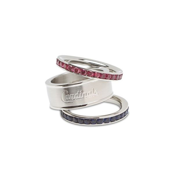 MLB ST LOUIS CARDINALS TEAM LOGO CRYSTAL STACKED RING SET SIZE 6 Crews Jewelry Grandview, MO