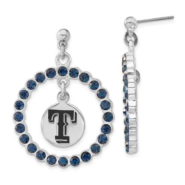 MLB Texas Rangers Silver-tone Blue Crystal Wreath Earrings Image 2 Crews Jewelry Grandview, MO
